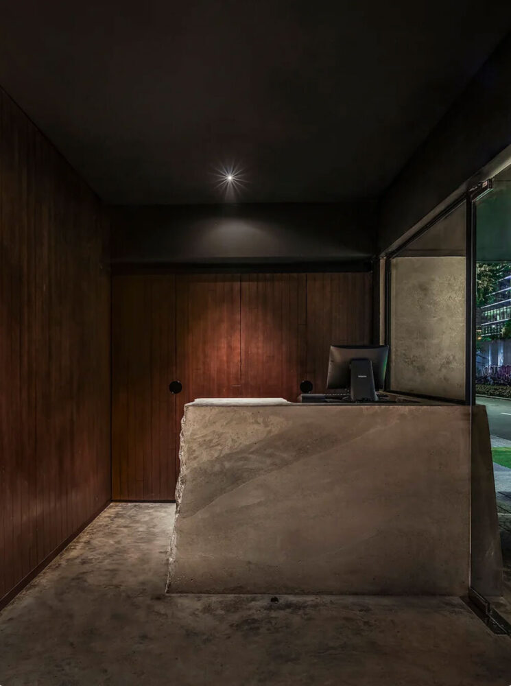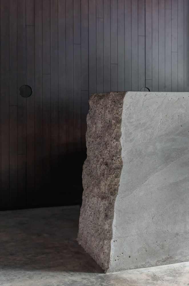 the villa’s bowl-shaped structure draws visitors inward, while still opening outward to the ocean horizon.