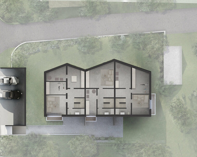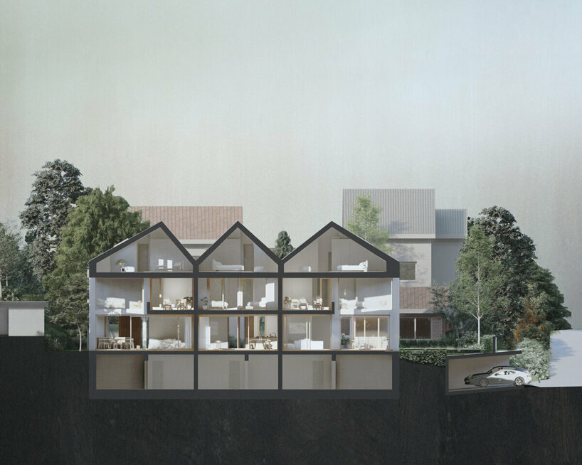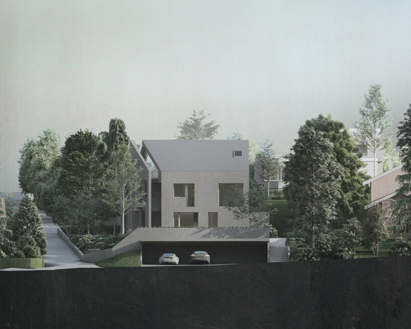 a protective south-facing wall shields the interior from excessive sunlight and provides privacy
