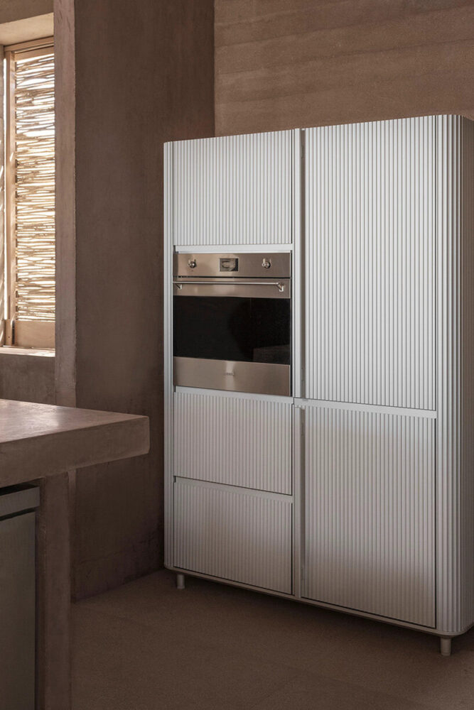 covered terrace is designed as the social nucleus of the residence