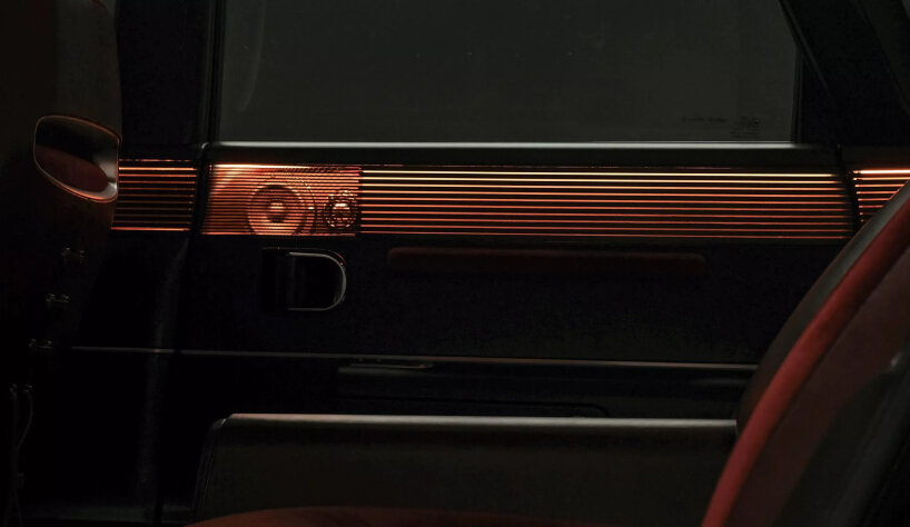 the car also features seat headrest-integrated speakers, portable door speakers and side-extendable seats