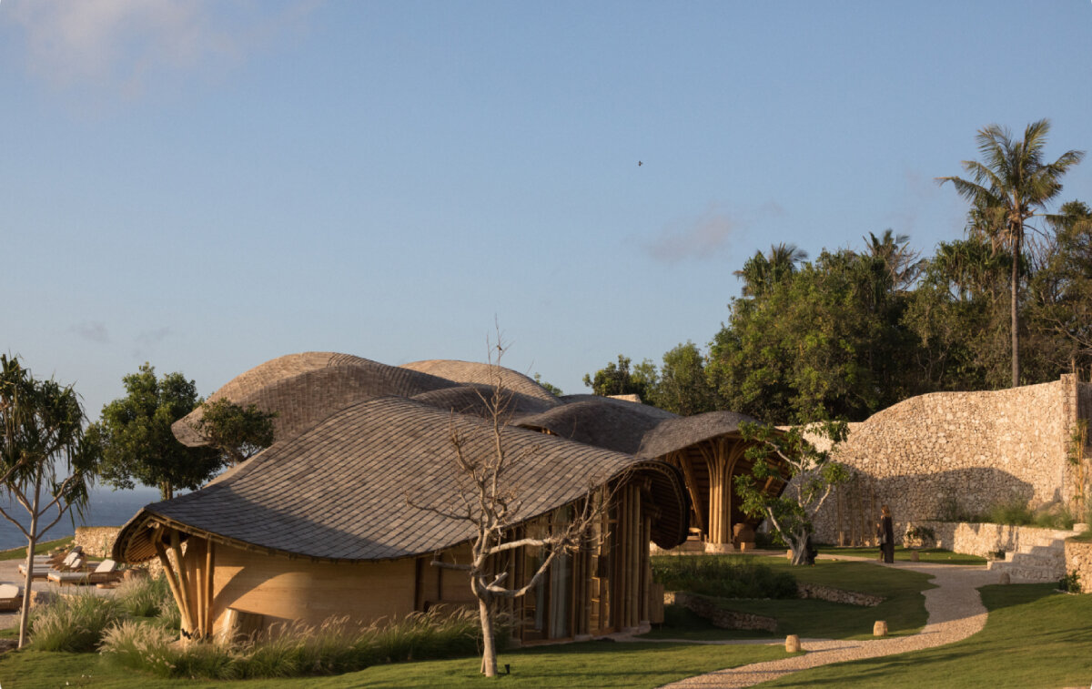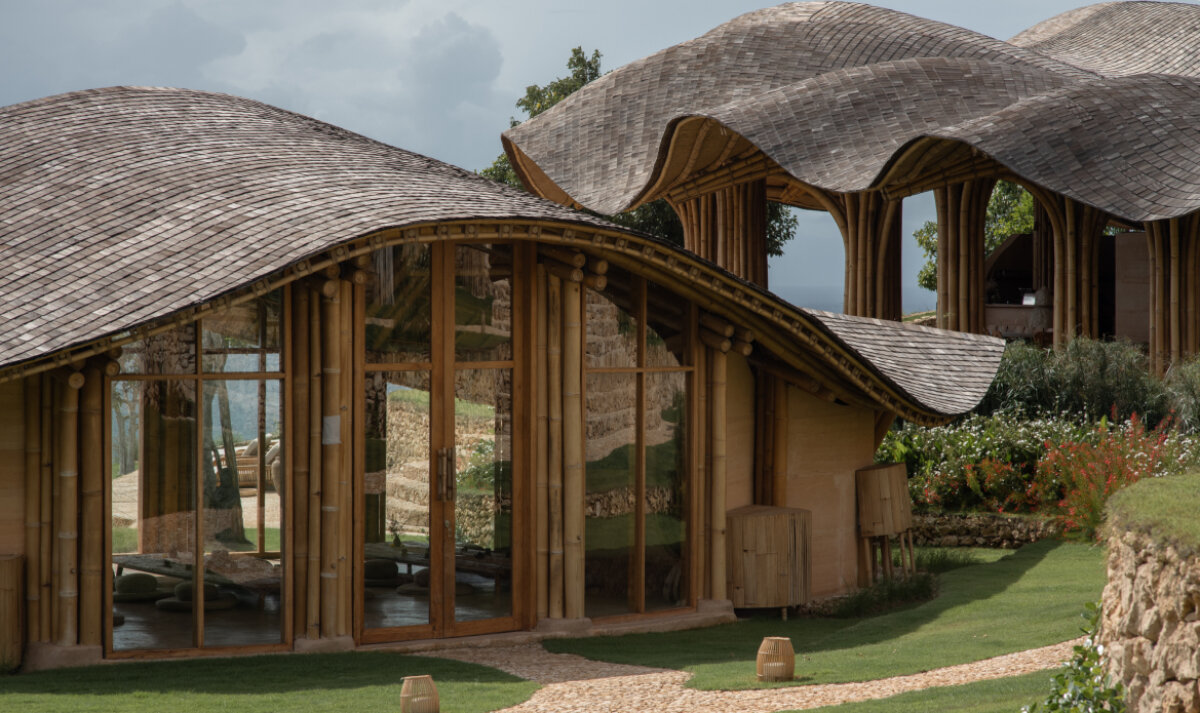 biomorphic volumes crafted from bamboo, timber, and stone nestle into Ubud’s lush jungle