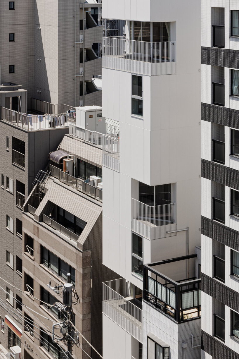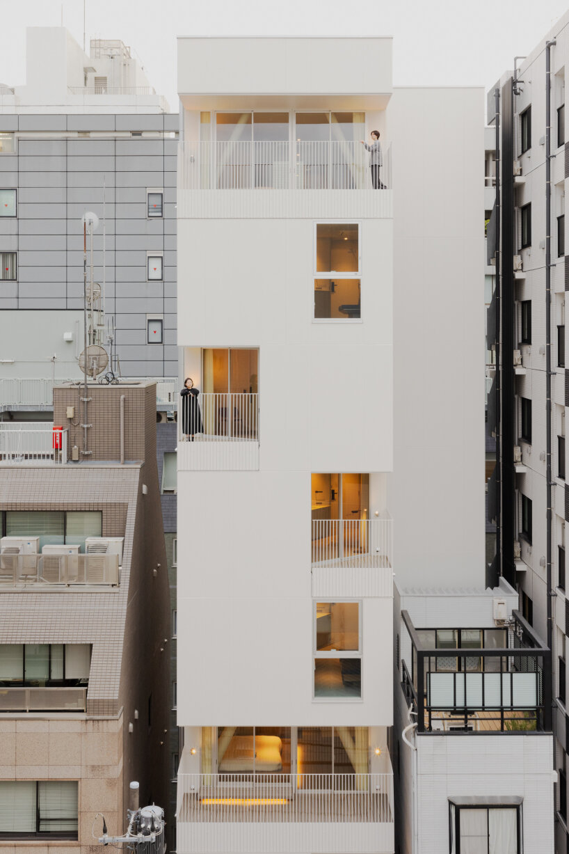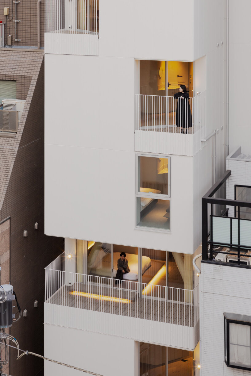 kooo architects carves luminous terraces into hotel facade on narrow, downtown tokyo lot