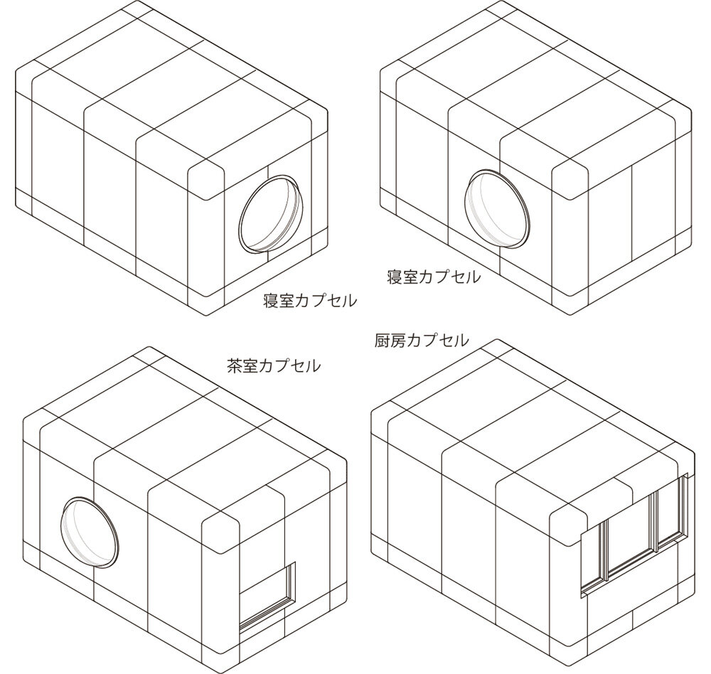 the structure is organized with a central core and four attached Capsule Rooms